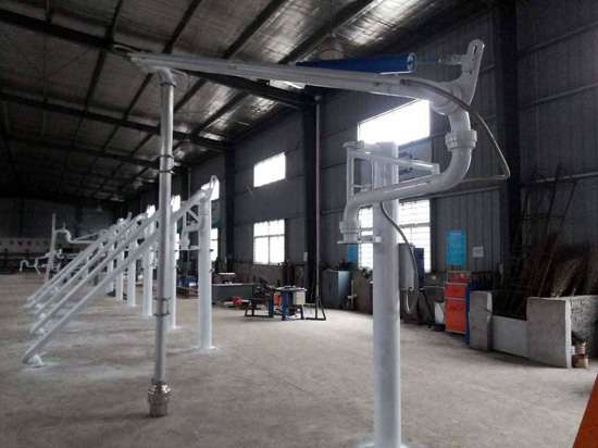 鶴管的安裝方法:發(fā)油臺與鶴管連接處配有相應的標準法蘭,并保證基礎法蘭牢固可靠,法蘭盤距地面高度為2.1~2.2米,鶴管倒裝時法蘭盤距地面高度為2.7~2.8米。安裝過程中,每個法蘭面必須輕清潔干凈,有密封槽的必須用黃油將O形圈裝好后再連接在每個銷軸轉動部分及彈簧平衡器安裝使用前必須涂潤滑機油。<了解詳情>