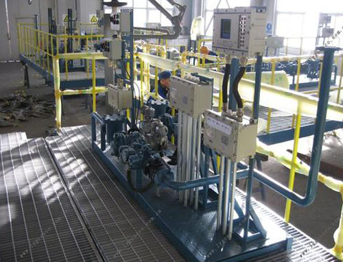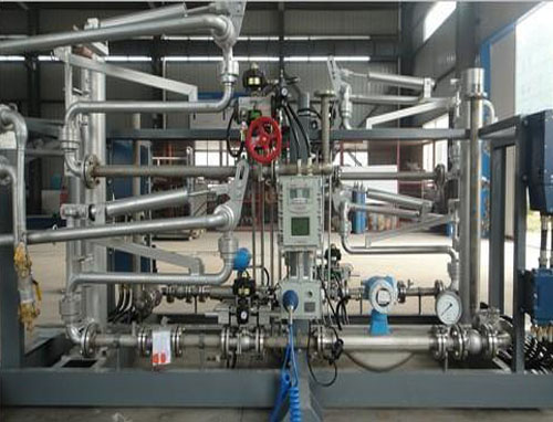 油品定量裝車橇裝組是指將每一個裝車鶴位內的儀表和設備集成在一個專用的框架結構內,儀表和設備包括裝車鶴管、流量計、防溢油靜電報警控制器、壓力變送器、裝車流量控制閥、緊急切斷閥,裝車泵、批量控制器等, 只預留工藝連接口和控制電源和通訊接口,這個整體集成部分稱為裝車橇。與傳統的裝車控制系統就地組裝比較,裝車橇可以節(jié)省現場設計和現場施工量,縮短項目工期,提高裝車控制系統的質量。